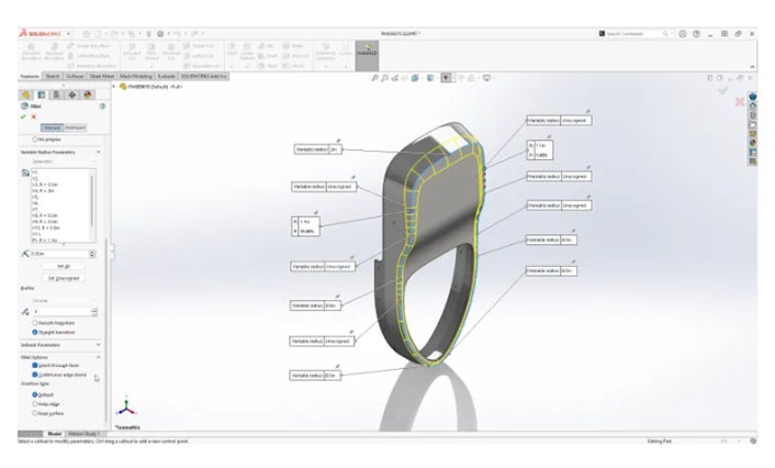 新しい選択アクセラレーターによる面取り設計の効率化と、フィレットエッジを連続的にブレンドするオプションでより滑らかな可変サイズフィレットの作成が可能