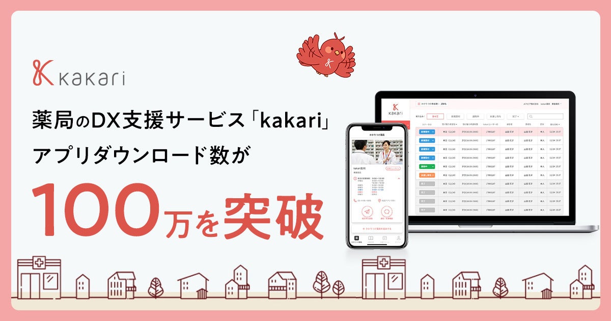 「kakari」は、薬局と患者さまの双方の課題を解決する機能によって、順調にダウンロード数を伸ばし、この度100万件を突破いたしました。