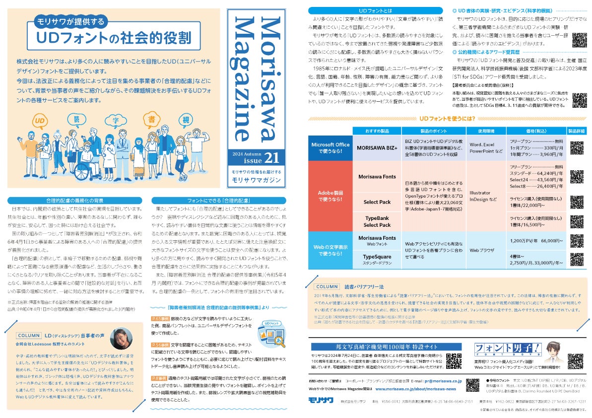 株式会社モリサワは、広報誌「MORISAWA MAGAZINE」2024秋号を発行しました。