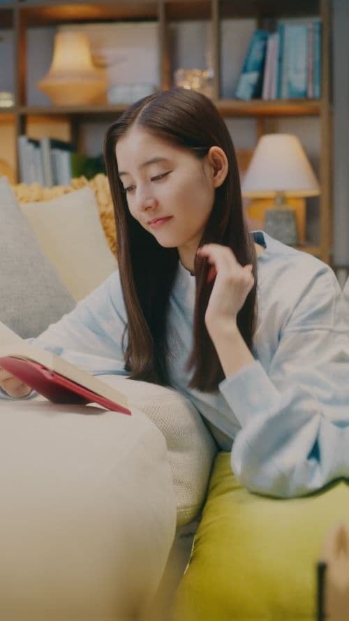 屋内のシーンでは仕事着・私服・パジャマなどさまざまな衣装に着替え、リビングでくつろいだり愛犬と遊ぶオフの柔らかい雰囲気から、撮影の控室ではお仕事前後のおちゃめな姿まで、さまざまな新木さんの表情を演じてくれました。