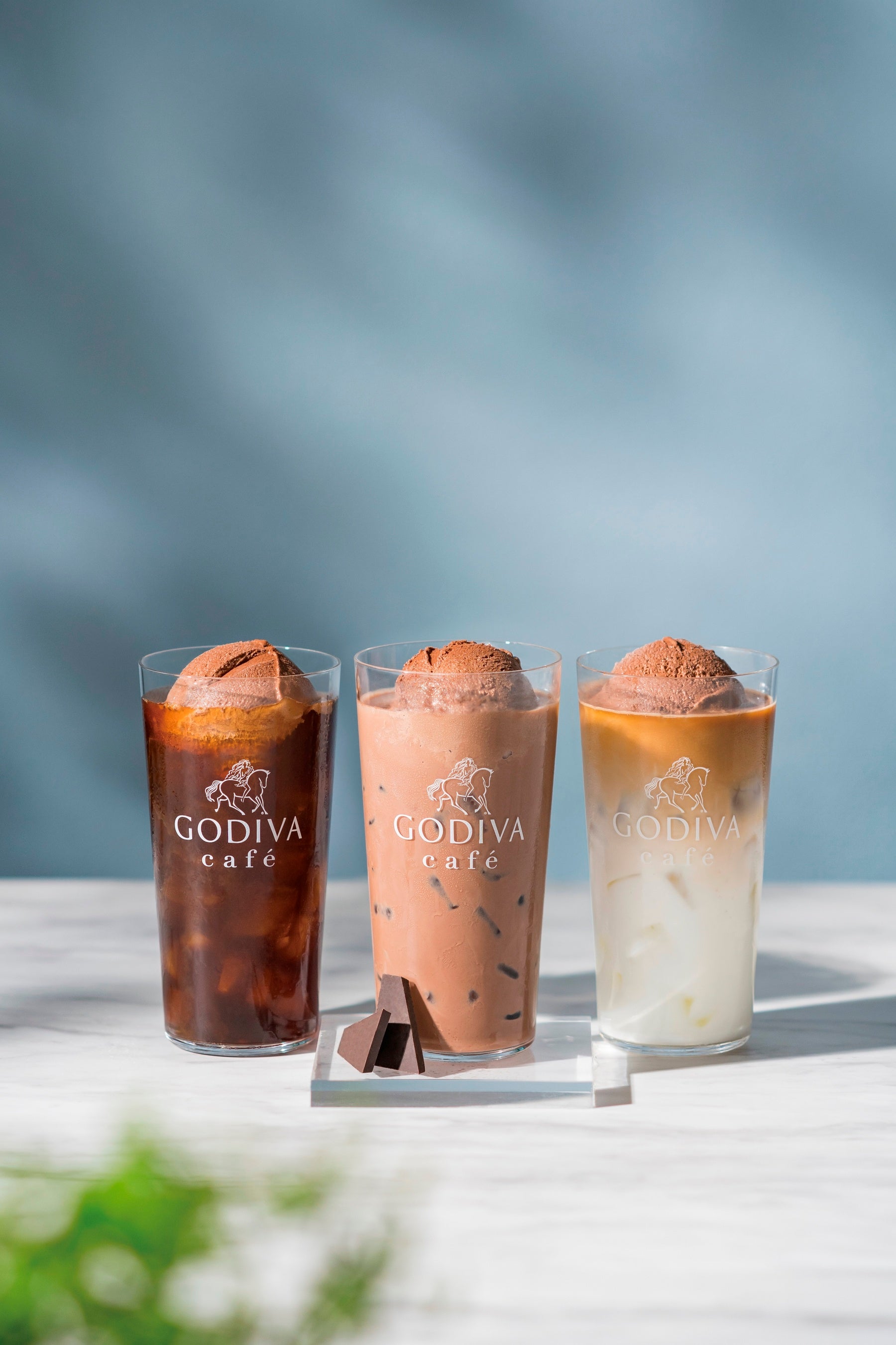 ゴディバカフェで人気のチョコレートドリンク「Gショコラ」を使用した「Gショコラフロート」や、店舗で淹れたてのアイスコーヒーやアイスカフェラテを使用した「コーヒーフロート」、「カフェラテフロート」の全3種類です。