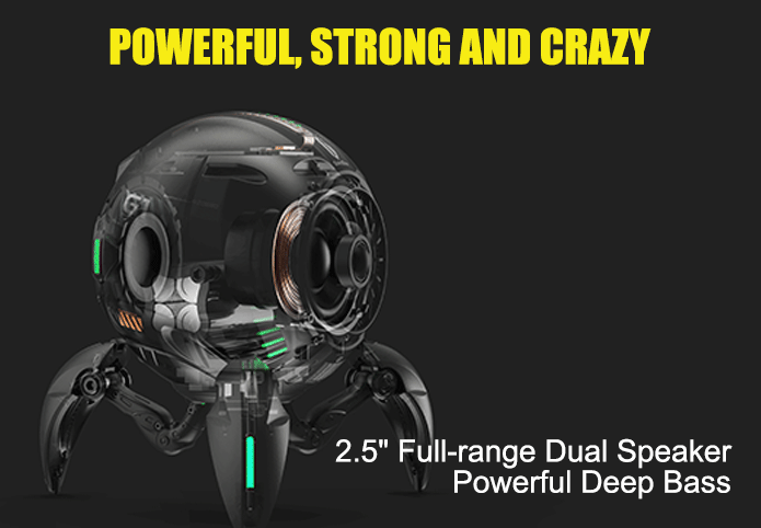ユニークな球体型は超音波の反射や干渉を大幅に削減するため、空気中のあらゆる方向に音を均一に伝達し、20~20,000hzまでの幅広い音域も高音質で響かせることができます。また、2.5インチ(6.35センチ)のフルレンジデュアルスピーカー搭載しており、前作以上に深みのある重低音を楽しめます。