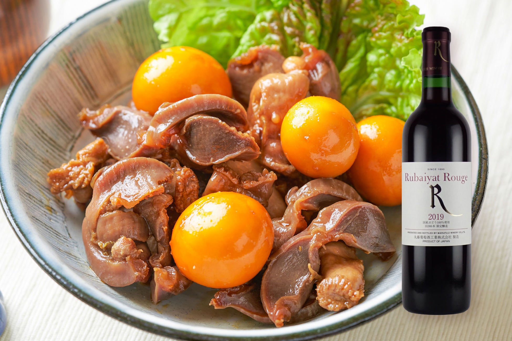 左)果実の香りと心地よい酸味、軽やかな味わいで、さまざまな料理とのマリアージュが楽しめる「ルバイヤート ルージュ」は、ご当地グルメの鳥もつ煮のこってりした味付けとも相性抜群です。