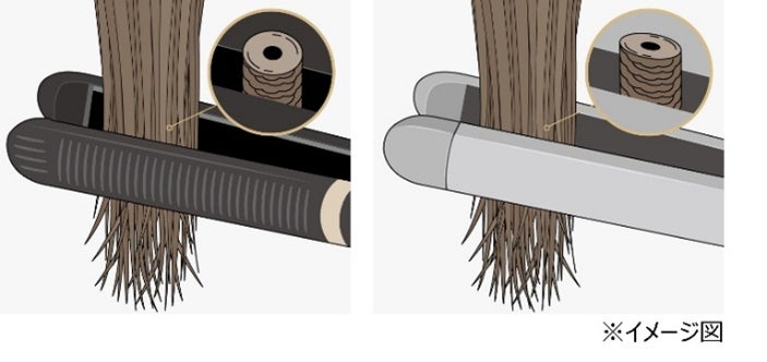 髪の表面に付着する水分が高温プレートにあたり、瞬時に蒸発すると、キューティクルにダメージを与えてしまいます。プレートの中心に切り込みを入れることにより、過剰な熱と水蒸気を逃し、髪へのダメージを抑制します。