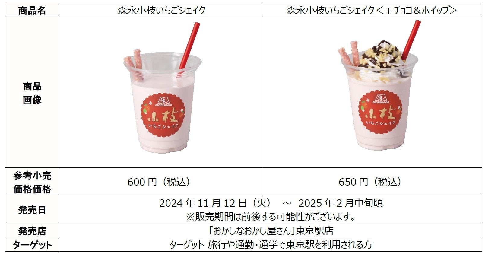 森永製菓アンテナショップ「森永のおかしなお菓子屋さん」 東京駅店限定「小枝」を使用した、あまずっぱいいちごのドリンクが初登場!「森永小枝いちごシェイク」11月12日(火)より期間限定で新発売
