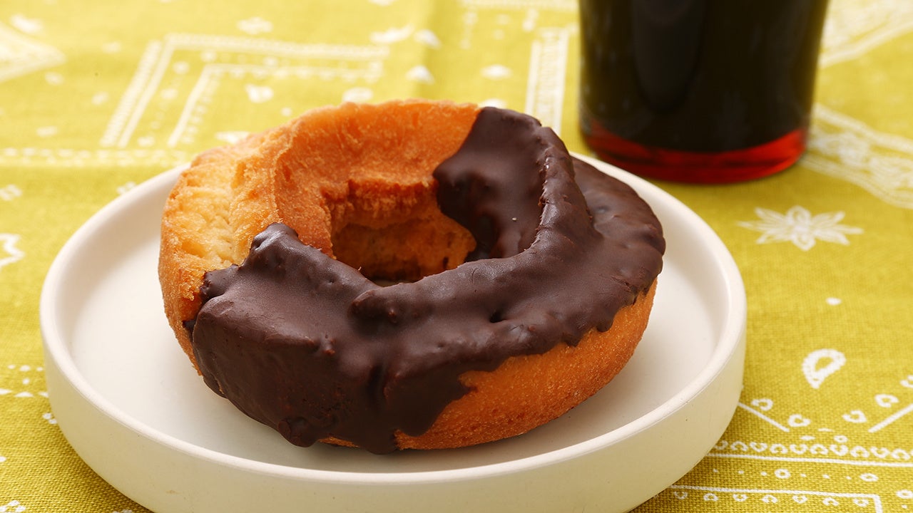 商品特長:定番人気のオールドファッションドーナツに、チョコをかけました。しっとりソフトな生地が昔ながらの親しみあるドーナツです。