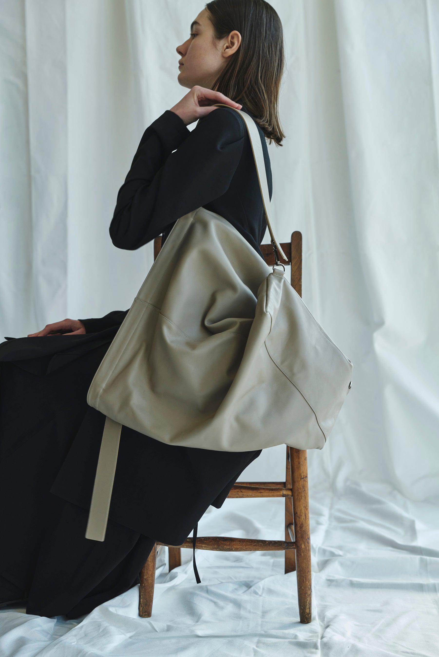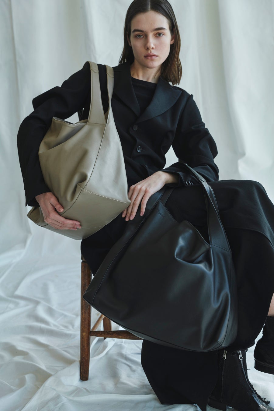 ビッグサイズのワンショルダーバッグ「TRIANGLE」。雑多なものが全て収納できるビッグシルエットを上質なレザーで表現し、メンズライクな要素と、上品さをユニークに兼ね備えたフォルム。