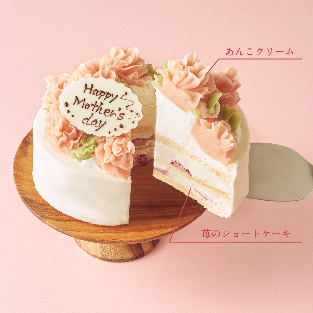 苺のショートケーキをベースに、カーネーションの部分には上品な甘さのあんこクリームを使用。
