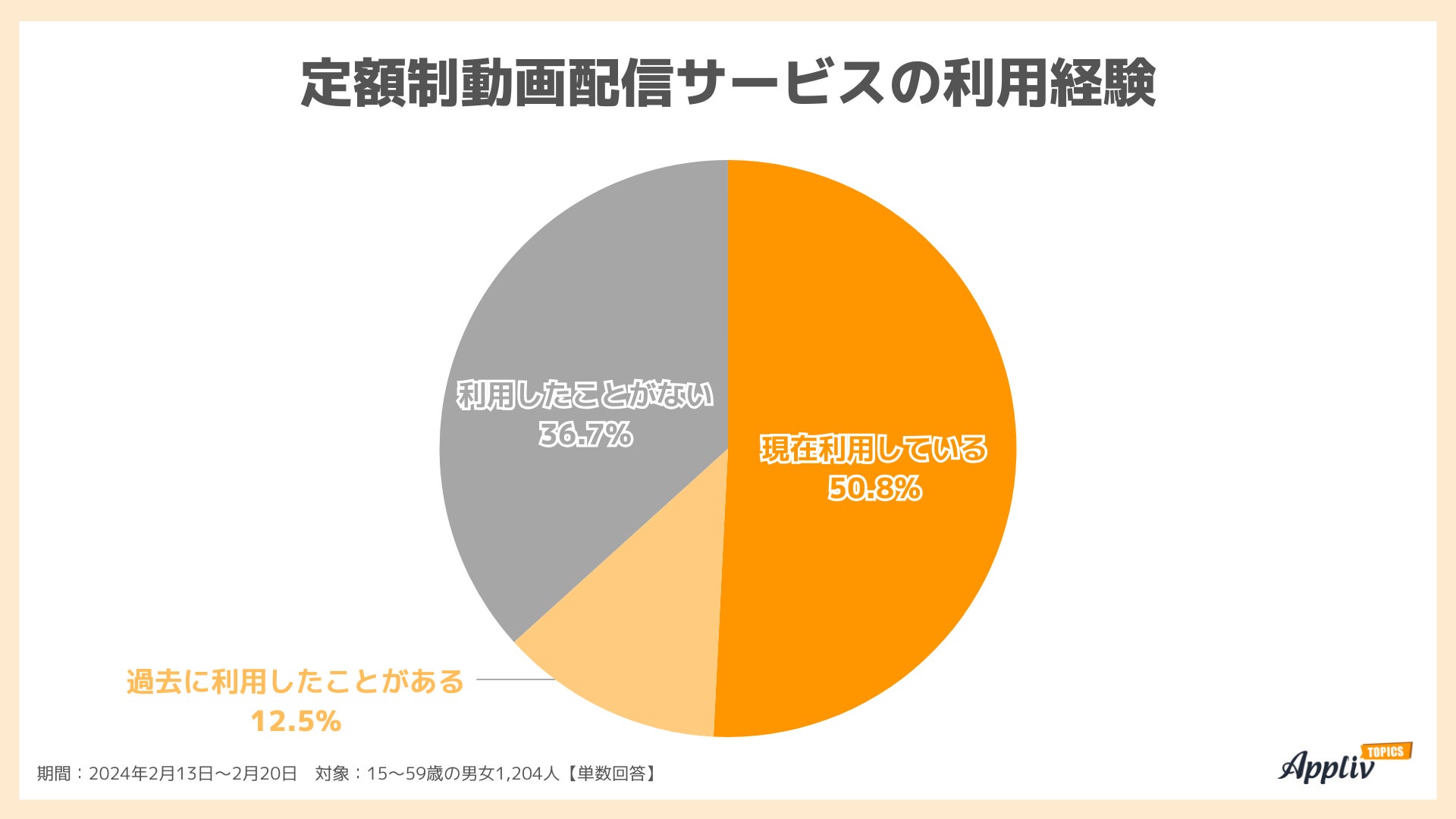 定額動画配信サービスを利用中の人は50.8%、2023年調査から3.1pt増