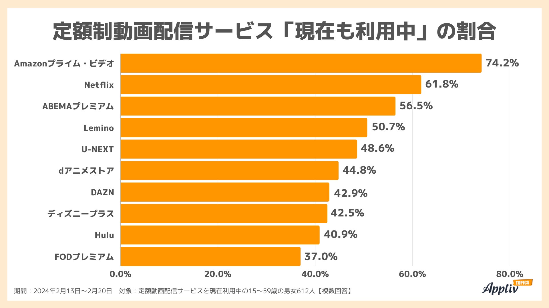 定額制動画配信サービスを2人に1人が利用中、人気はAmazonプライム・ビデオ、Netflix、U-NEXT(Appliv TOPICS調べ)