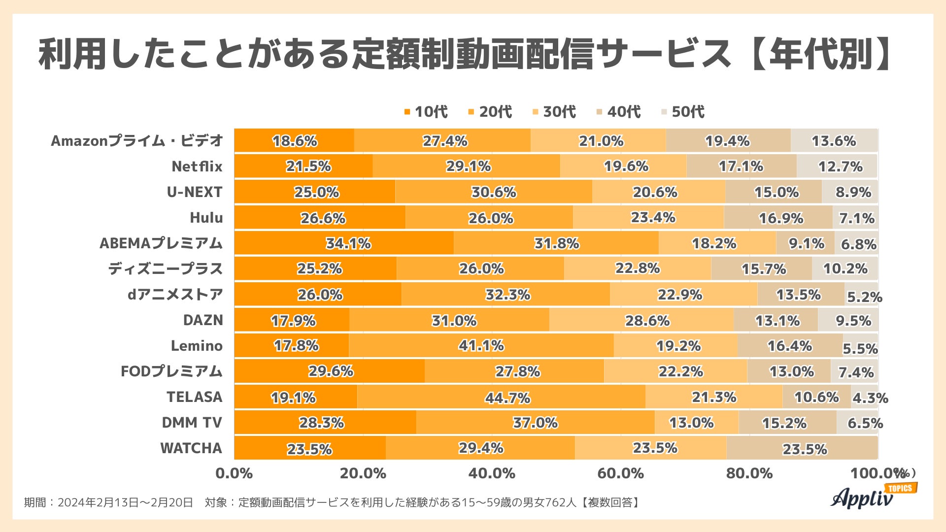 「Appliv TOPICS」は15~59歳の男女1,204人を対象に、2024年2月13日~2月20日の期間で、定額動画配信サービスに関するアンケートを実施しました。