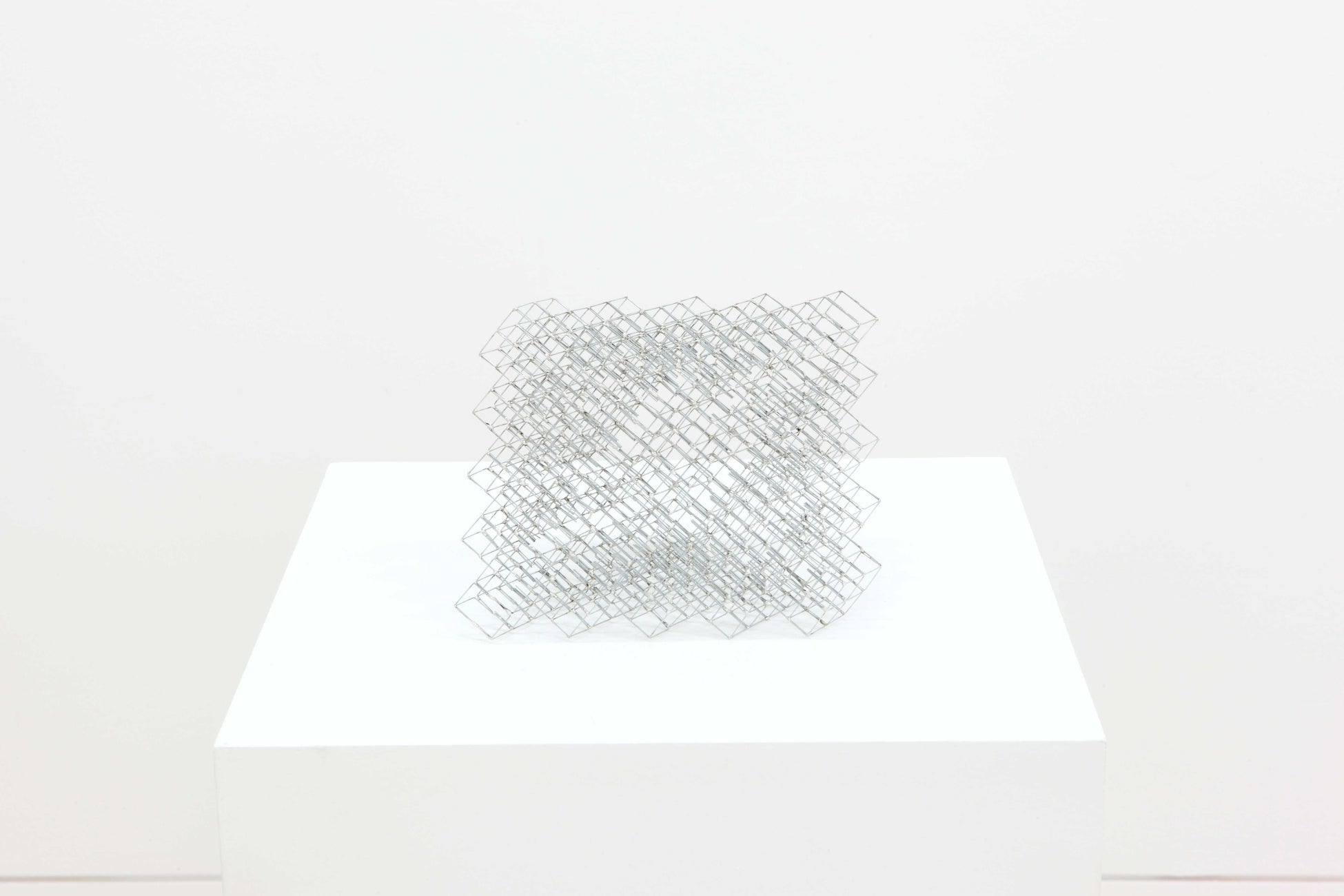 ボールペン、シャンプーボトル、ホッチキスの針などを使った造形作品を制作。