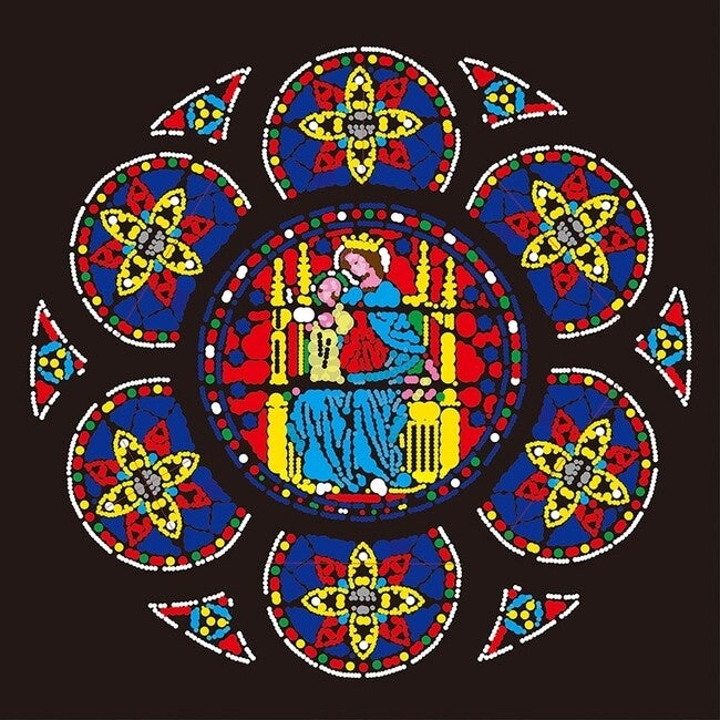 文具の丸シールを点描感覚で貼り付けた絵画を制作。