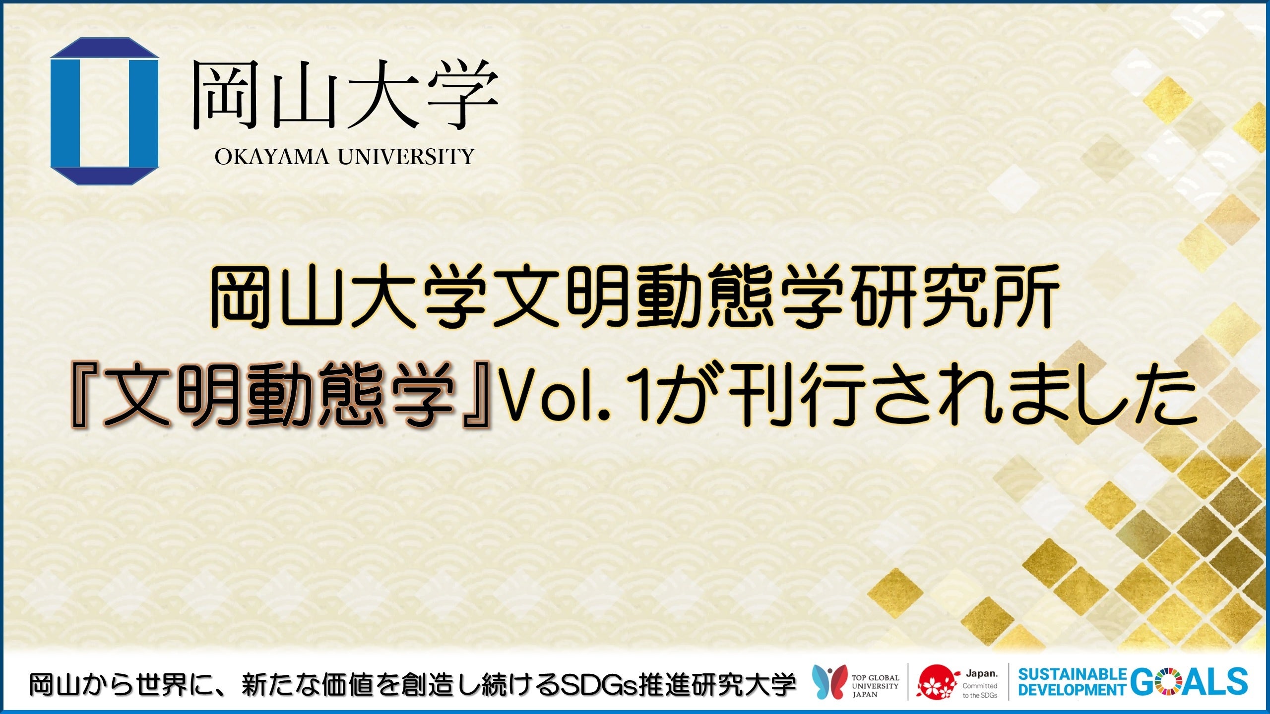 【岡山大学】岡山大学文明動態学研究所『文明動態学』Vol.1が刊行されました
