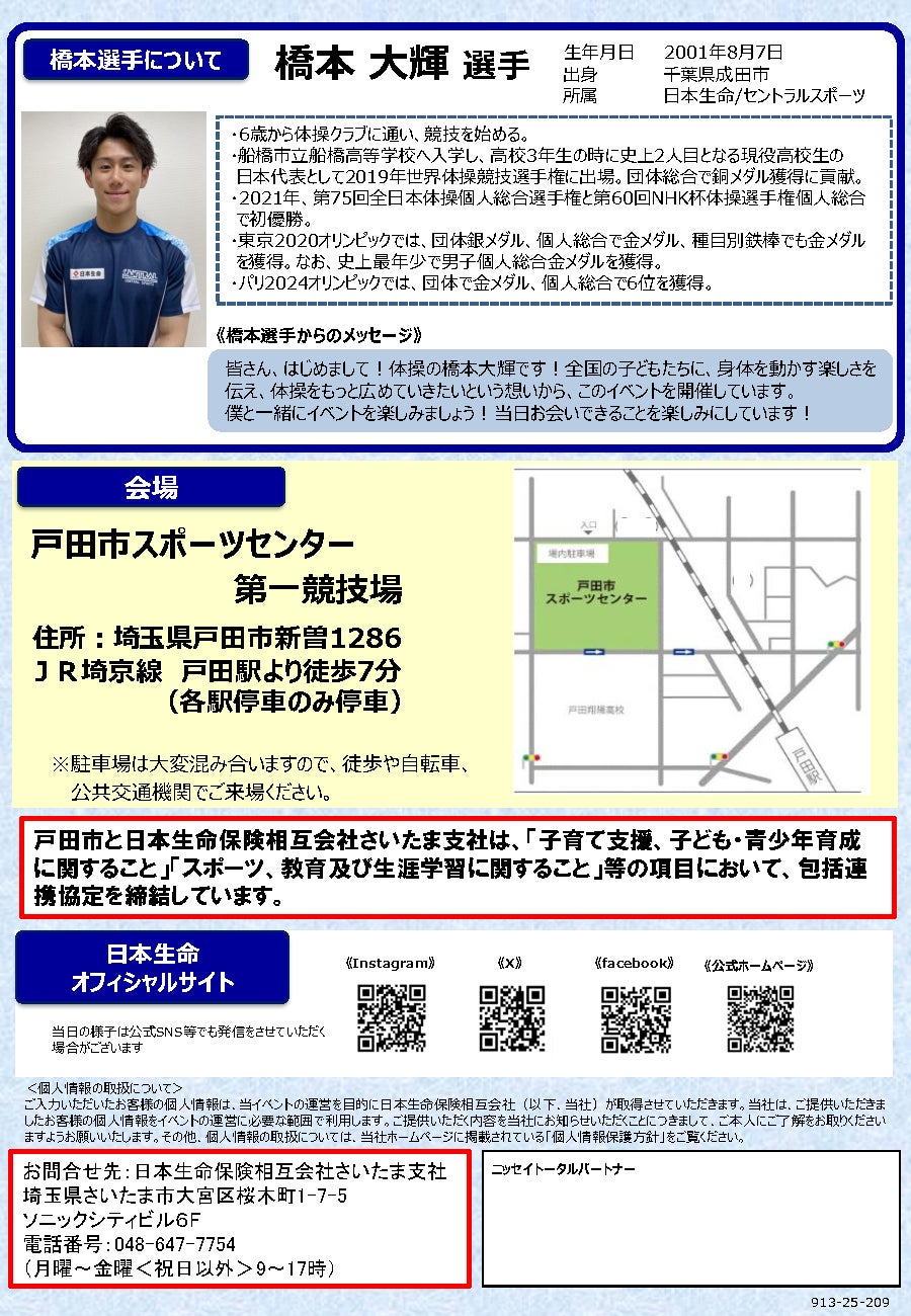 【埼玉県戸田市】オリンピック金メダリスト 橋本 大輝(はしもと だいき)選手による体操教室&トークショーを開催します!