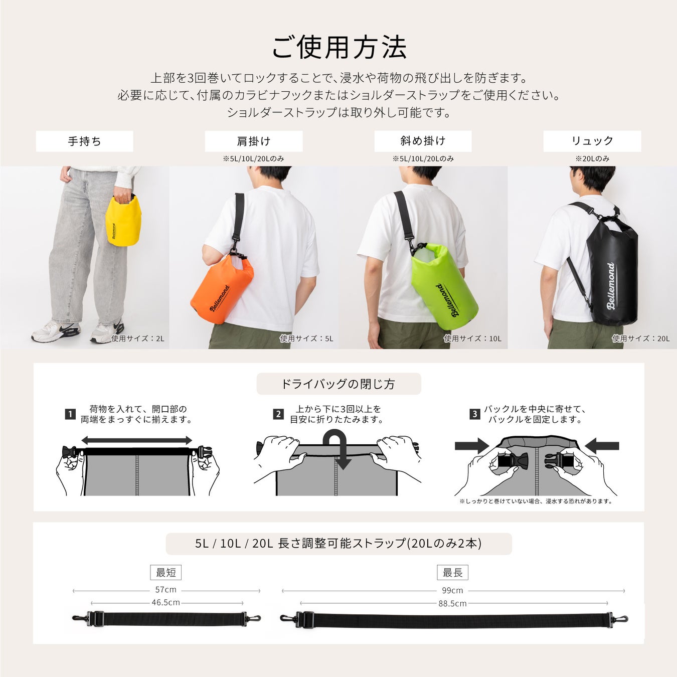 【こんなデザインが欲しかった】IPX6ドライバッグを発売。シンプルでオシャレなロゴデザインを配した防水バッグで、アウトドア・バイク・海・プール、部活バッグなどに◎2L・5L・10L・20Lの6色展開