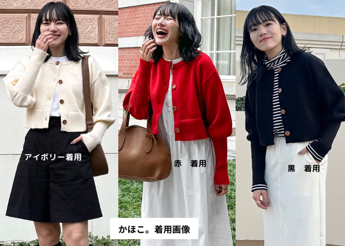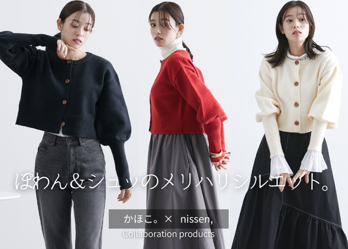 かほこ。×nissen, 「ショート丈ニットカーディガン」