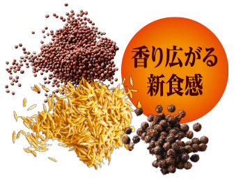 2種の焙煎ホールスパイス「クミンシード」と「マスタードシード」、更に「粗挽きのブラックペッパー」をルウに練り込むことで、噛む度に豊かな香りが広がるカレー。
