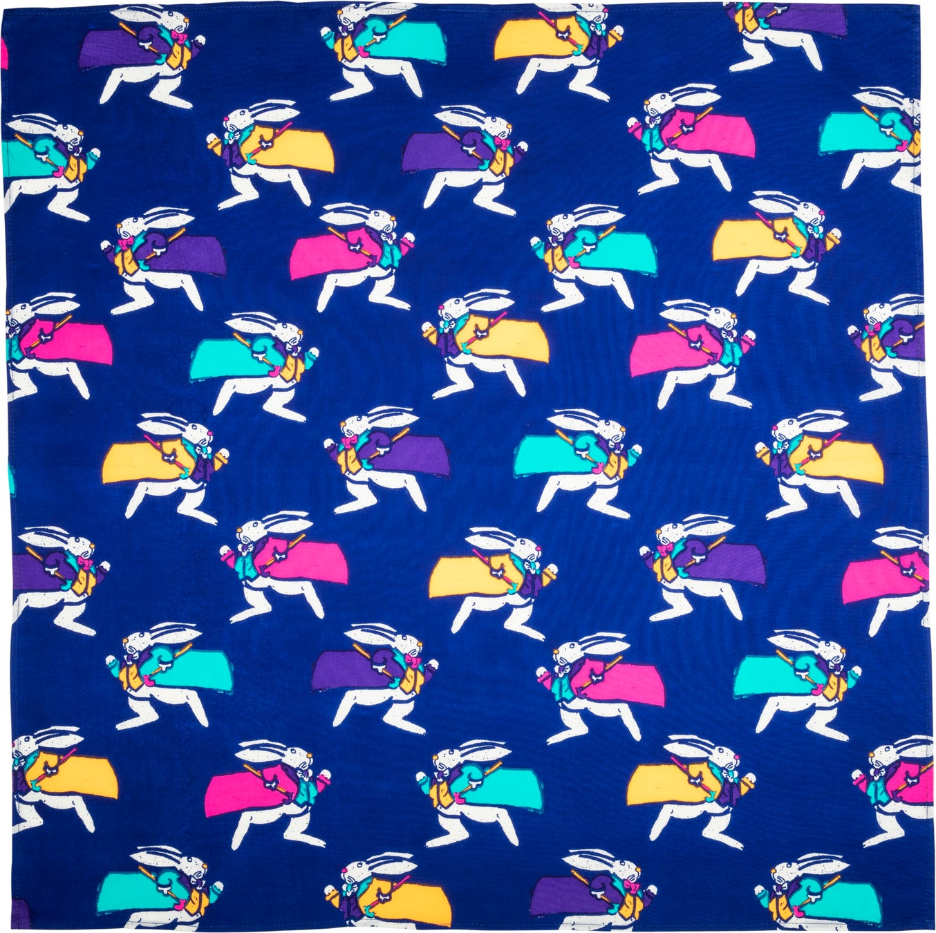 バス、シャワー、リップスクラブがセットになったギフト。ラッピングデザインは、「不思議の国のアリス」の白ウサギからインスピレーションを受けています。鮮やかなネオンのジャケットを着たウサギが駆け回っています。