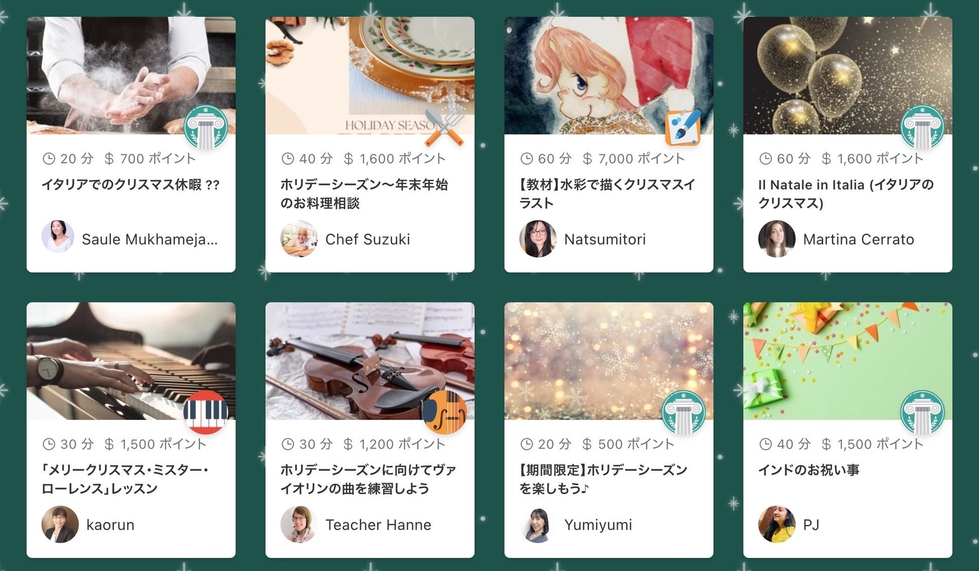 世界のさまざまな国・地域から参加する講師陣による、この季節に受講してみたい「ホリデー」に関するオンラインイベント・レッスン特集を公開しました。