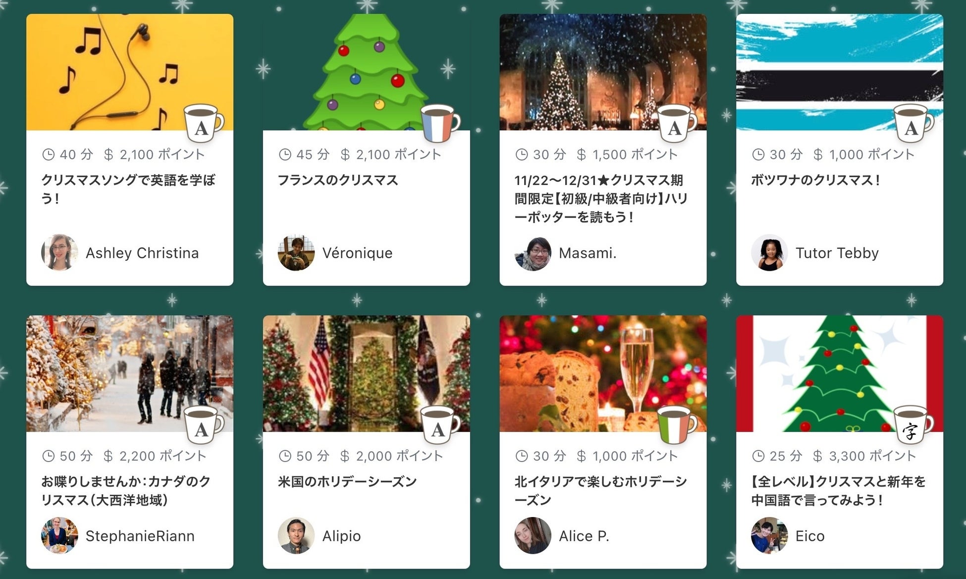 - 期間限定 世界のホリデーについて話す、楽しむオンラインレッスン