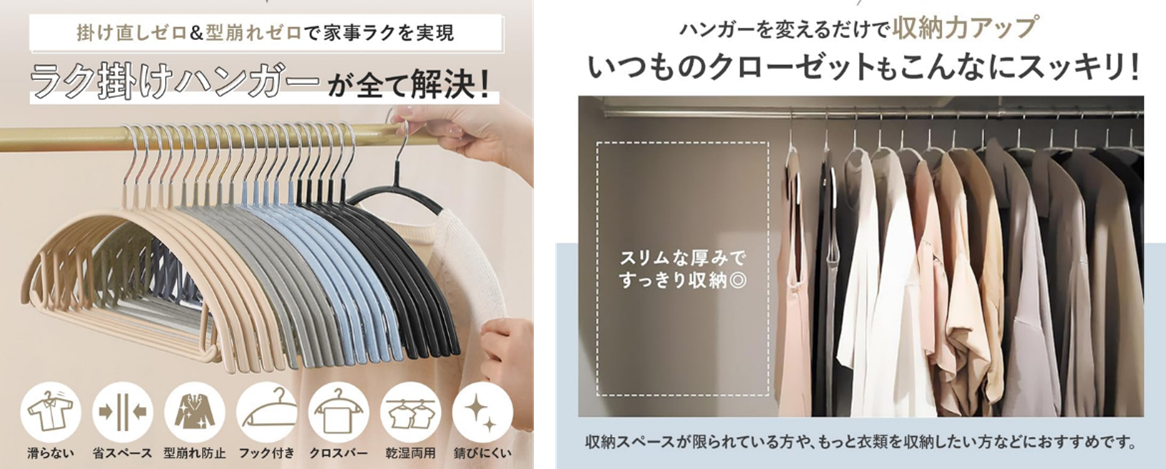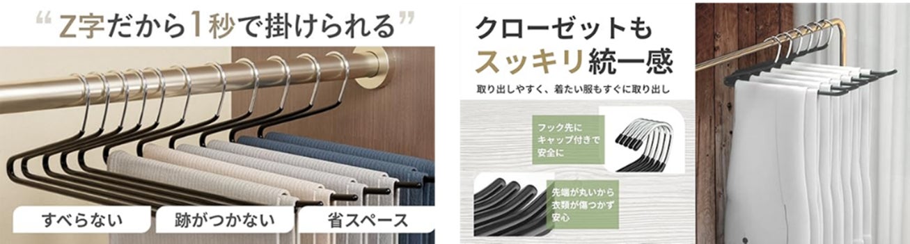 衣類がズレ落ちにくく、クローゼット内を美しく保てる点が支持され、直近1年間で累計販売数100万本を突破。日常使いのハンガーとして、多くのお客様にご利用いただいています。