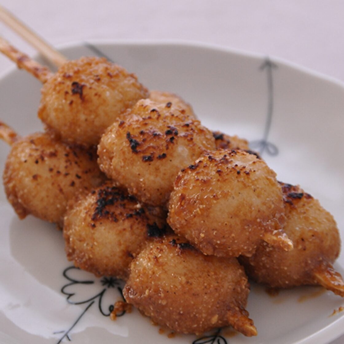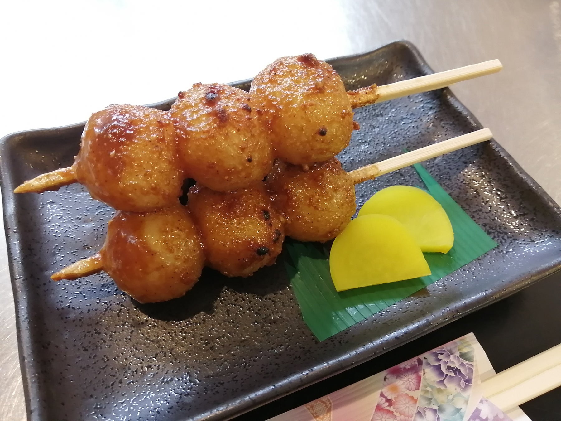 昭和43年以来変わらぬ、自家製落花生と胡麻、くるみがたっぷり入った甘口醤油だれが決め手の地元のお米を使用した団子型の五平餅です。