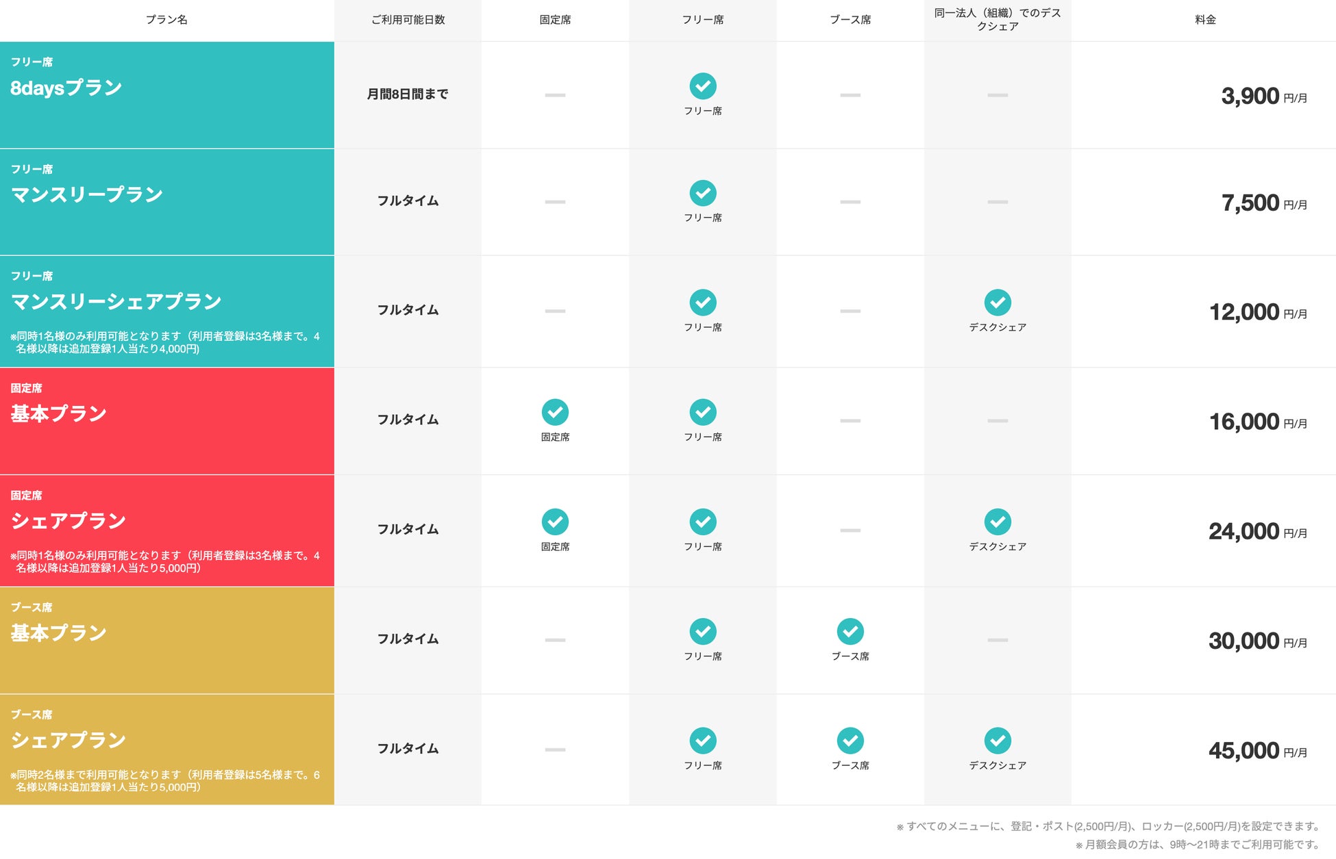 休暇を利用したワーケーションで数時間でも気軽に利用できる3時間1000円のドロップイン利用や、副業や事務作業などで数日利用したい人にもぴったりの月8日間3,900円など、手頃な料金設定をご用意しました。様々な働き方に対応した、料金設定が魅力です。