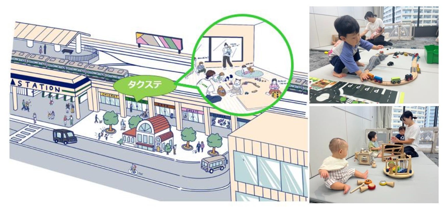 「タクステ」は、JR東日本の鉄道高架下を管理・運営している㈱ジェイアール東日本都市開発が、駅ナカ・駅チカに「一時託児所」を設置することで、子育てユーザーが簡単・気軽に一時託児を利用することが可能になり、その後、駅周辺で自分時間を過ごすユーザーと店舗・事業者を繋ぐプラットフォームサービスです。