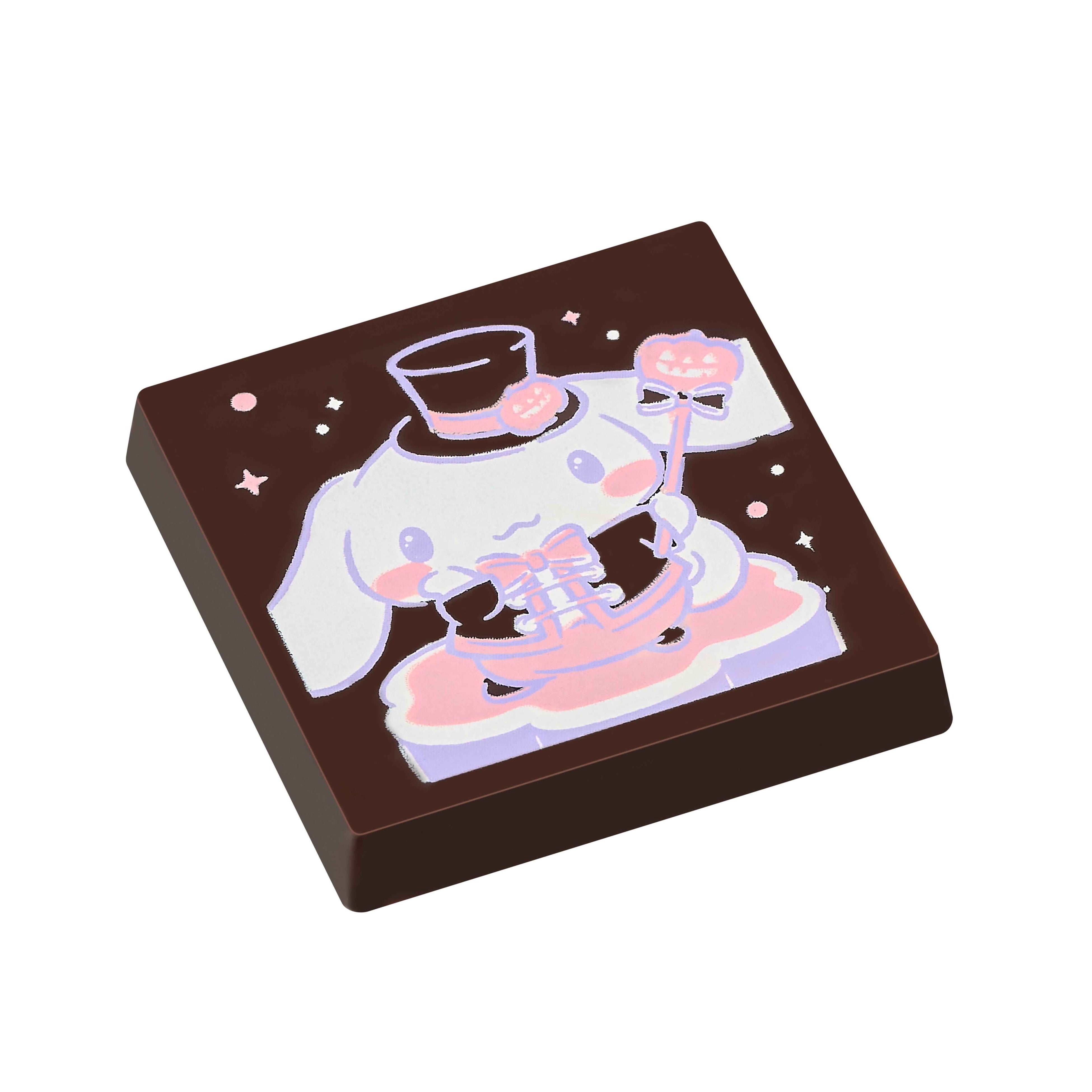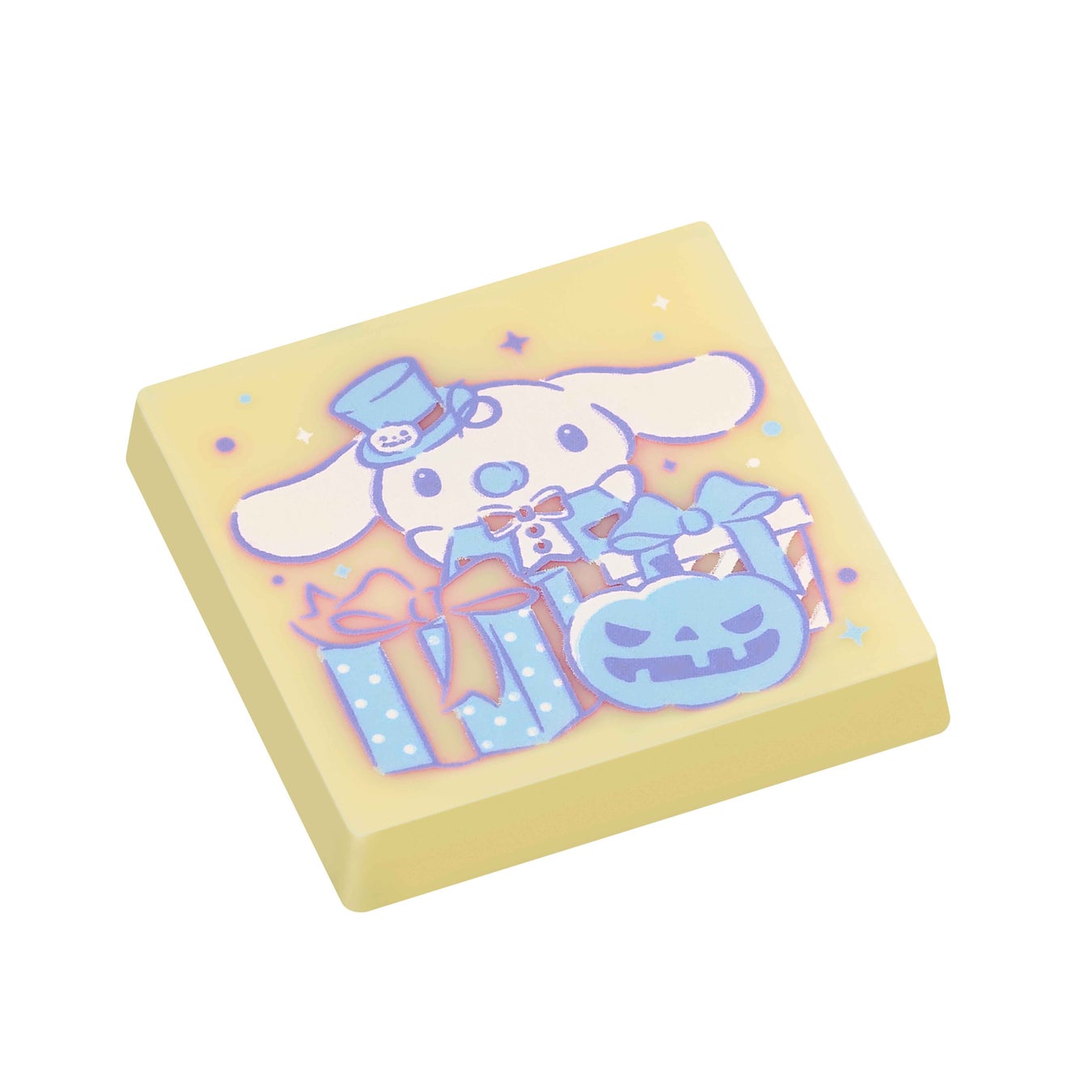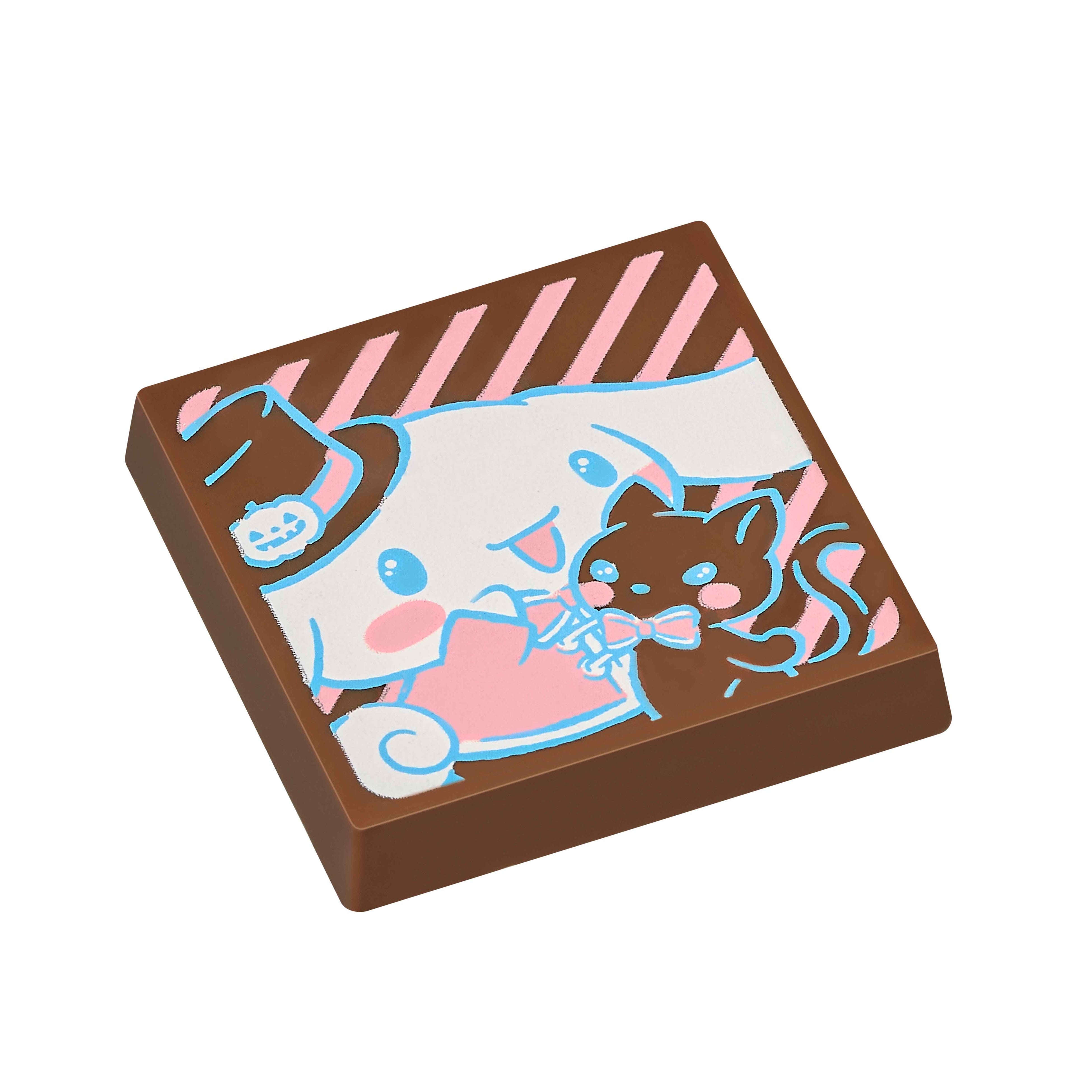 サンリオの人気キャラクター シナモロールがアイドルグループに大変身して登場します。チョコレートボックスの蓋を開けると、シナモロールたちのステージがポンッと飛び出します。引き出しには、ハロウィンを楽しむシナモロールたちが描かれた9種類の限定チョコレートが入っています。さらに、ボックスの2次元バーコードを読み取ると、シナモロールのARフォトフレームで撮影できるサイトにアクセスします。シナモロール チャームがかわいいヘアアクセサリーでおめかしをして、シナモロールたちといっしょにハロウィンを楽しみましょう!