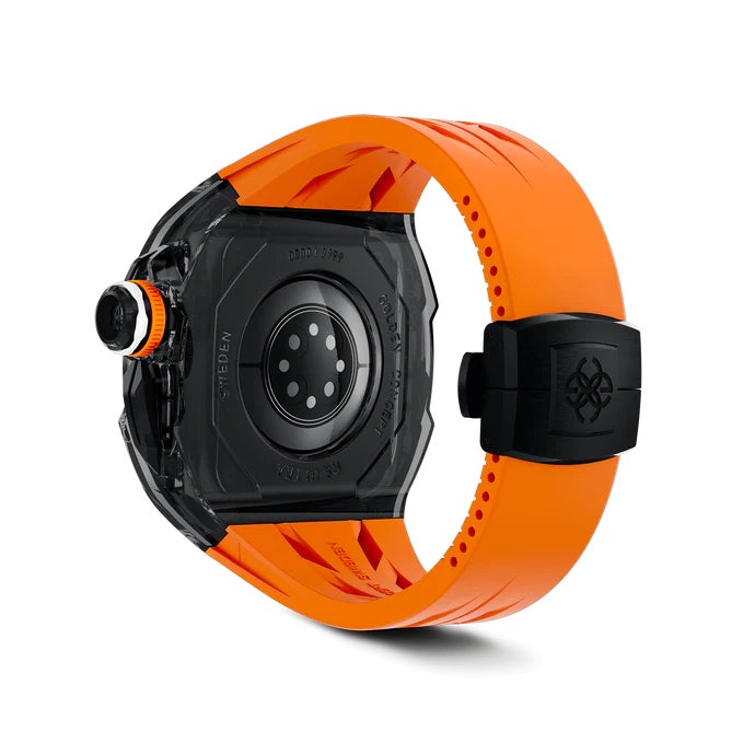 「SMOKEY ORANGE」は、鮮やかなオレンジのストラップと、ブラックのクリアケースが特徴です。このデザインは、カラーと素材の絶妙な組み合わせにより、印象的でスタイリッシュな外観を実現しています。