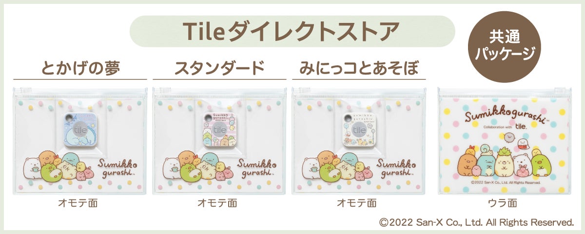 今回の「すみっコぐらし デザインTile」は、ファスナーが付いたオリジナルパッケージ入りの全5種類のデザインTileで、ファミリーマート、Tileダイレクトストア、それぞれ限定デザインで登場します。