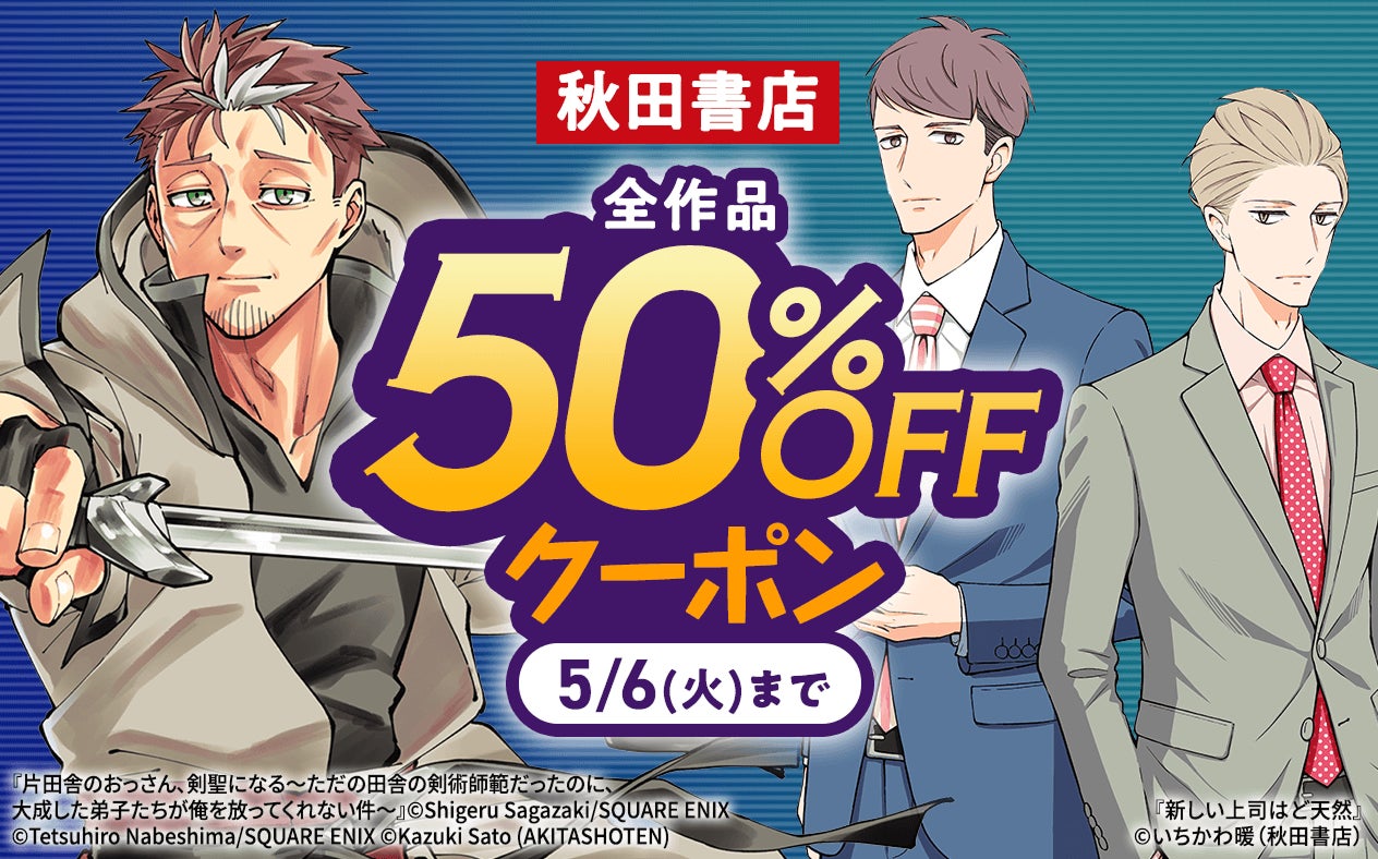 期間中、秋田書店の全作品にご利用いただける50%OFFクーポンを配布いたします。