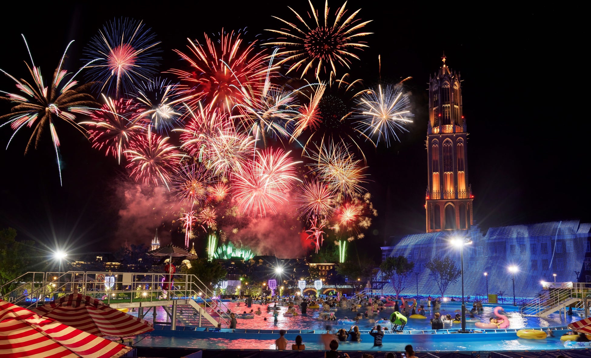 イルミネーションアワード「総合エンタテインメント部門」で、10年連続第1位を獲得した、ハウステンボスのイルミネーションに包まれてプールを満喫できます。ヨーロッパの街並みとプールの水面に映るイルミネーション、花火のコラボレーションを堪能できるのは、ハウステンボスの醍醐味!さらに、光の滝とウォーターキャノンのコラボレーションショーや泡の演出などで子どもから大人まで気分が最高潮に。サマーナイト花火の開催日には大輪の花火が打ち上がります。ナイトプールは年齢制限や予約制などが設けられる施設が多い中、ハウステンボスではどなたでもご利用でき、家族や友人とナイトプールを思う存分にお楽しみいただけます。