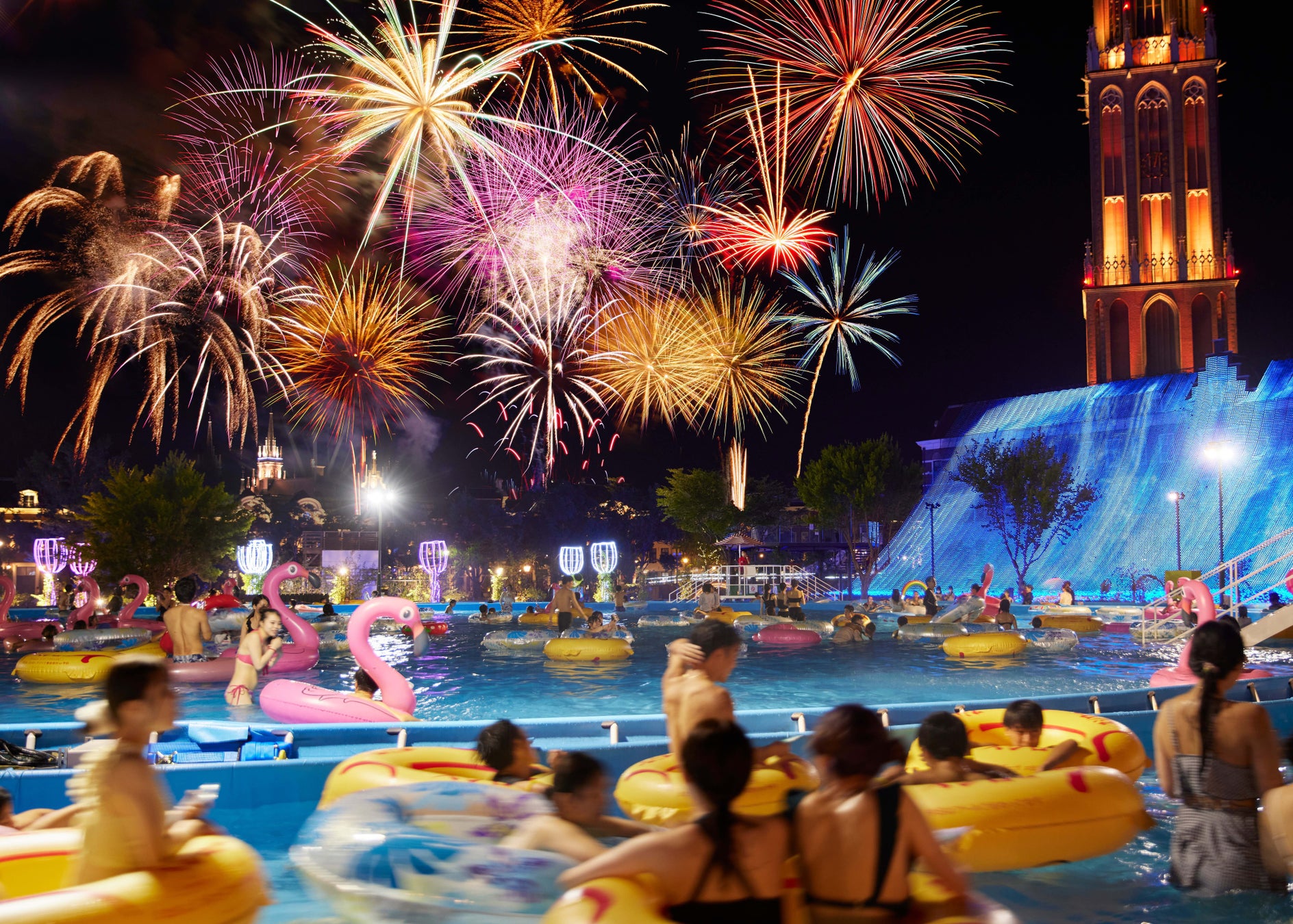 夜はプールを楽しみながら日本一のイルミネーションや圧巻の花火を観賞できる