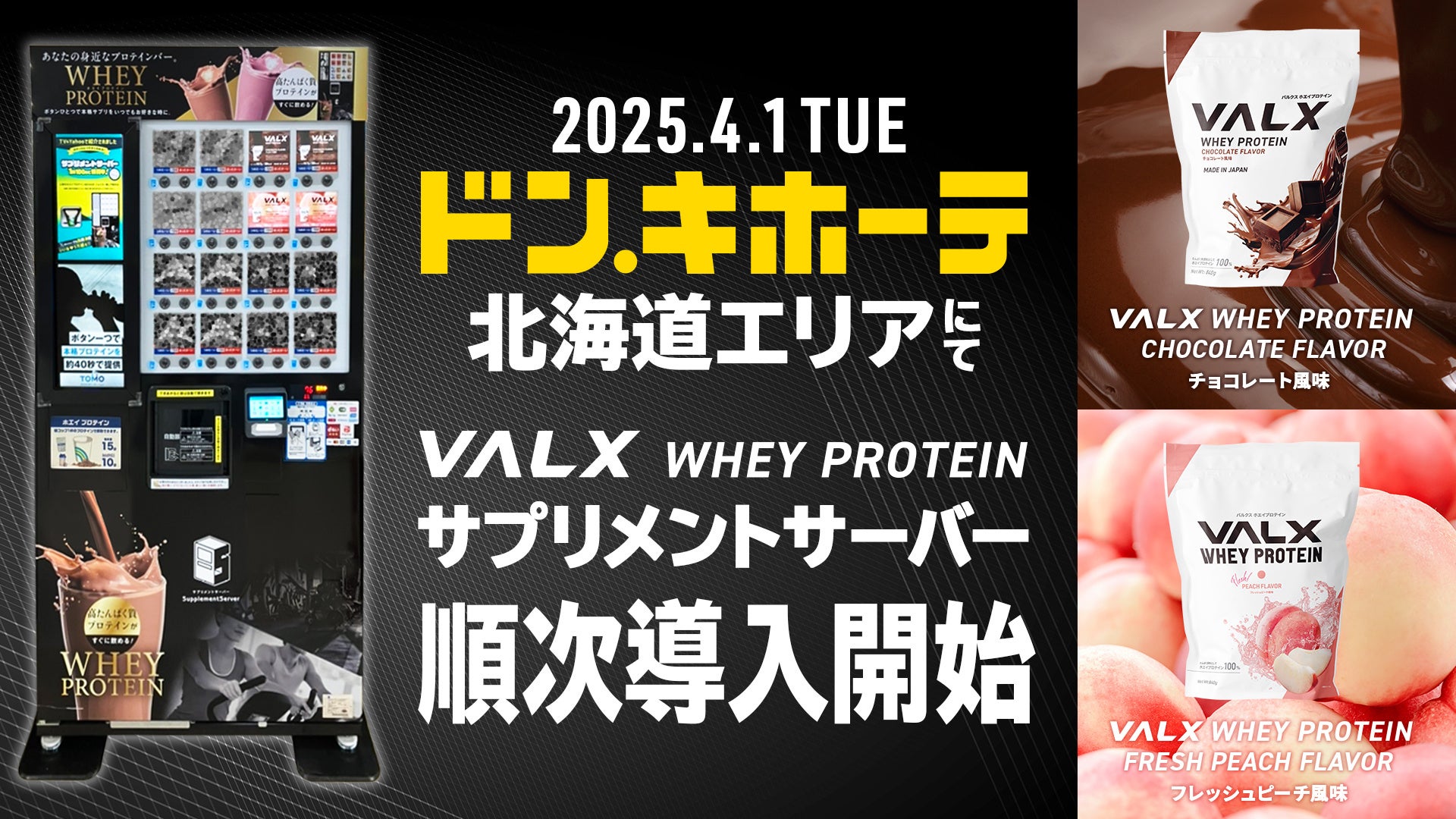 フィットネスブランド「VALX(バルクス)」を展開するVALX株式会社(本社:東京都渋谷区、代表取締役:只石昌幸、以下VALX)は、2025年4月1日(火)より北海道エリアのドン・キホーテ系列店舗(※一部店舗を除く)にVALX ホエイプロテイン2種のフレーバーを含む「サプリメントサーバー」の設置を開始したことをお知らせいたします。
