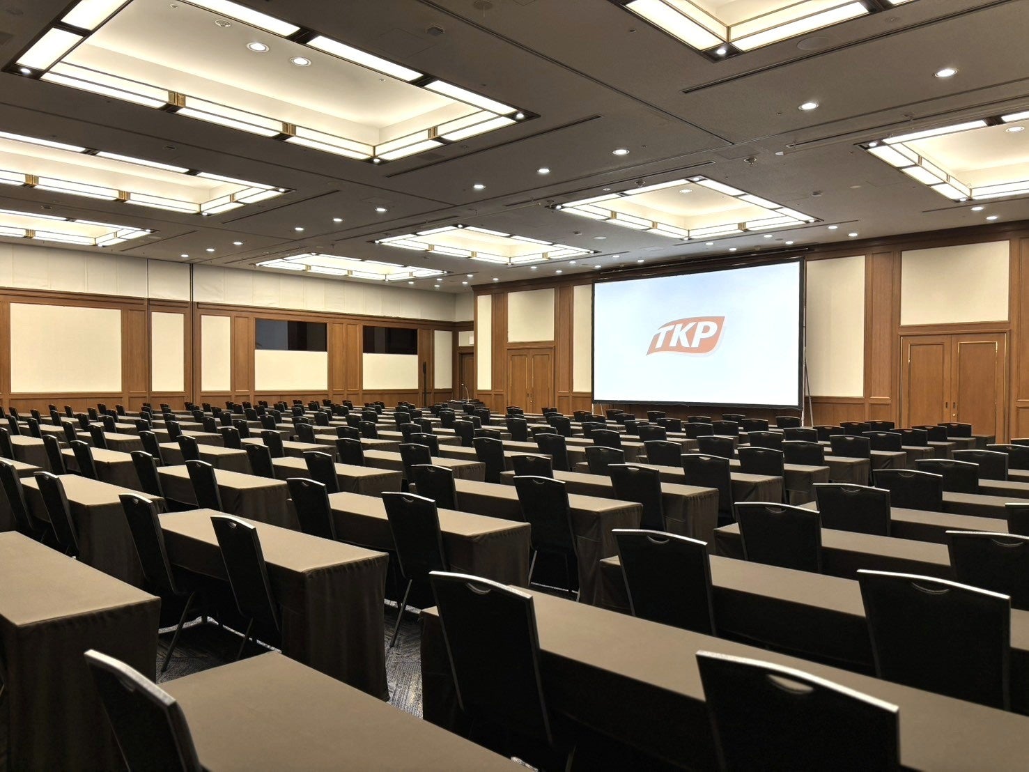 総契約面積1,180㎡(357坪)を誇る本施設には、天井高4.5mの開放感あふれる約400㎡の大型ホールをはじめ、用途に応じて柔軟にレイアウト変更が可能な会場を備えています。会議や研修、株主総会、カンファレンス、記者発表会、表彰式、各種パーティーまで、多様なビジネスシーンに対応いたします。また、高性能な音響・照明設備や大型スクリーンを備え、多彩な演出が可能です。式典やパーティーの場にふさわしい上質な空間を提供します。