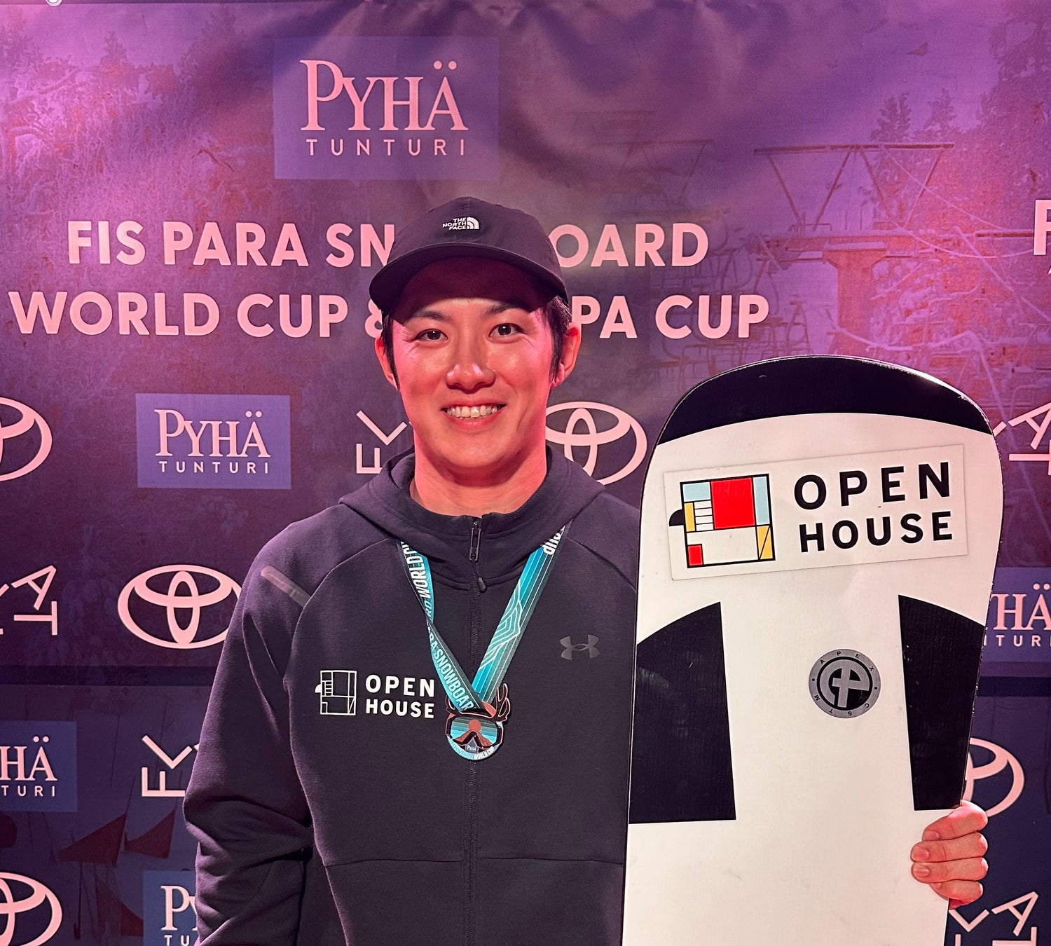 オープンハウスグループ社員でパラアスリートの小須田潤太選手パラ スノーボード ワールドカップ男子「スノーボードクロス LL1」で世界3位