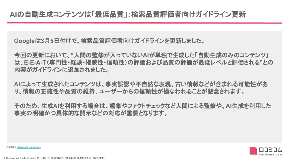 他にも「AIの自動生成コンテンツは「最低品質」ガイドライン更新」などローカルSEO担当者必見の情報が満載!