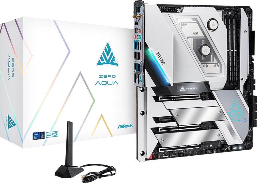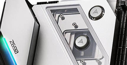 「Z690 AQUA」はCPU用水冷ブロックを搭載したE-ATXマザーボードです。マザーボードのステータスがわかるOLEDディスプレイ、表面実装技術で搭載したPCIe5.0スロット、保護回路付きDDR5スロットなど最新テクノロジーを搭載しています。