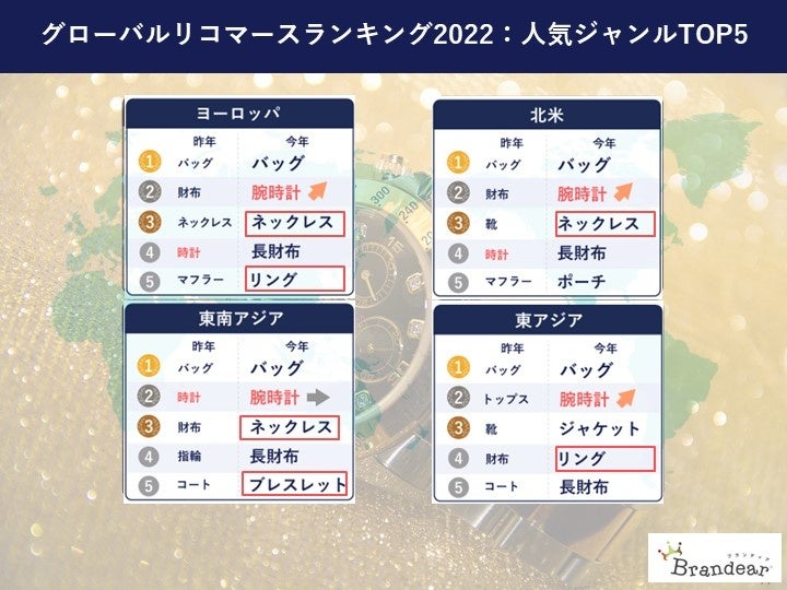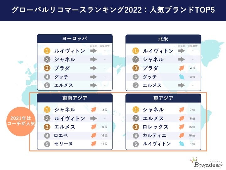 - 北米・欧州では定番ブランドが不動の人気、東アジア・東南アジア圏では人気ブランドに変化