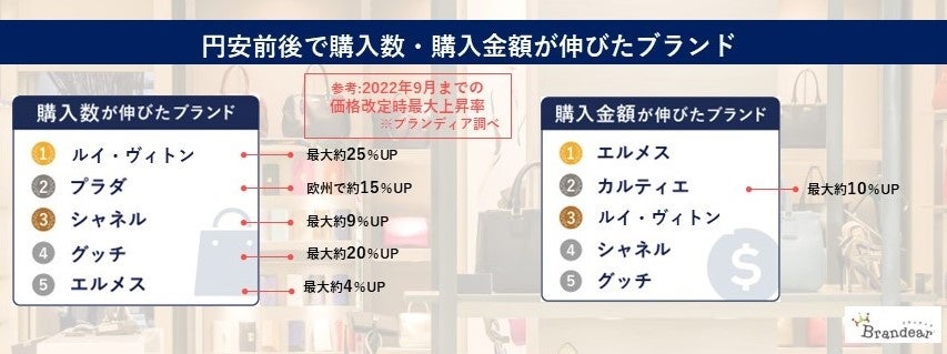 - 【円安・物価高の影響か、価格改定の続いたブランドの購入数・金額が伸長】