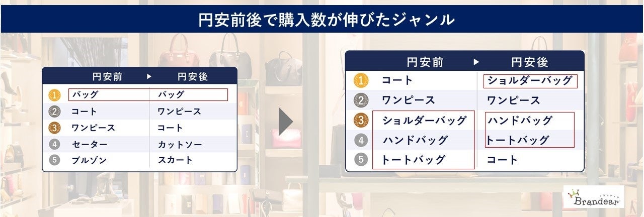 - 【円安直後では「バッグ」の購入数が伸長】