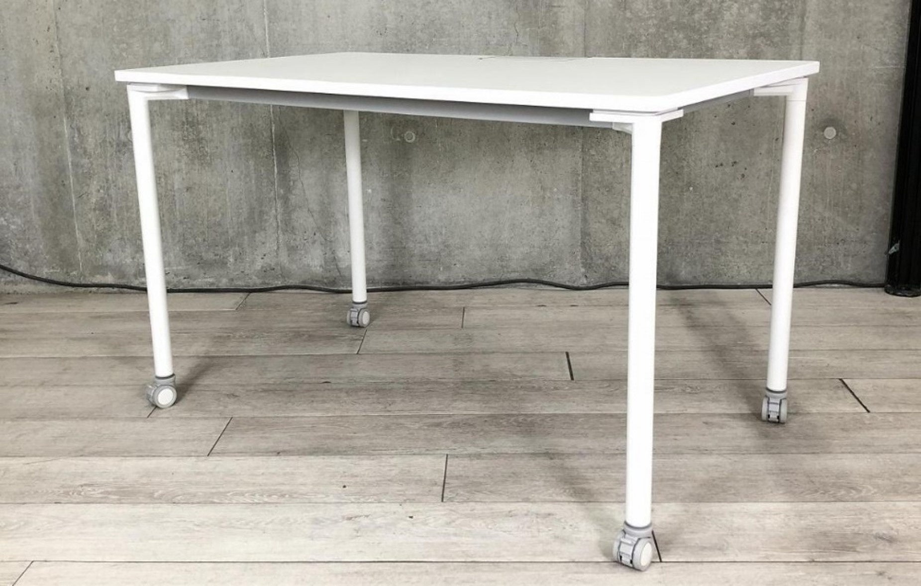 デスクでは、「イトーキ アクティブフィールド」をご用意。集中業務からミーティング、ワークショップまで目的に合わせて簡単に移動できるキャスター付になります。天板には配線取り出し口が付いておりケーブルを整理整頓できます。ホワイトカラーでオフィスの雰囲気も明るくなります。