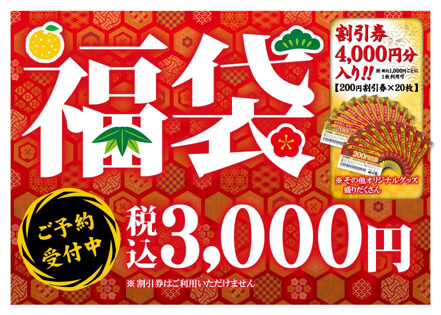 ※割引券は他券との併用、換金・返金、また福袋のご購入はいただけません