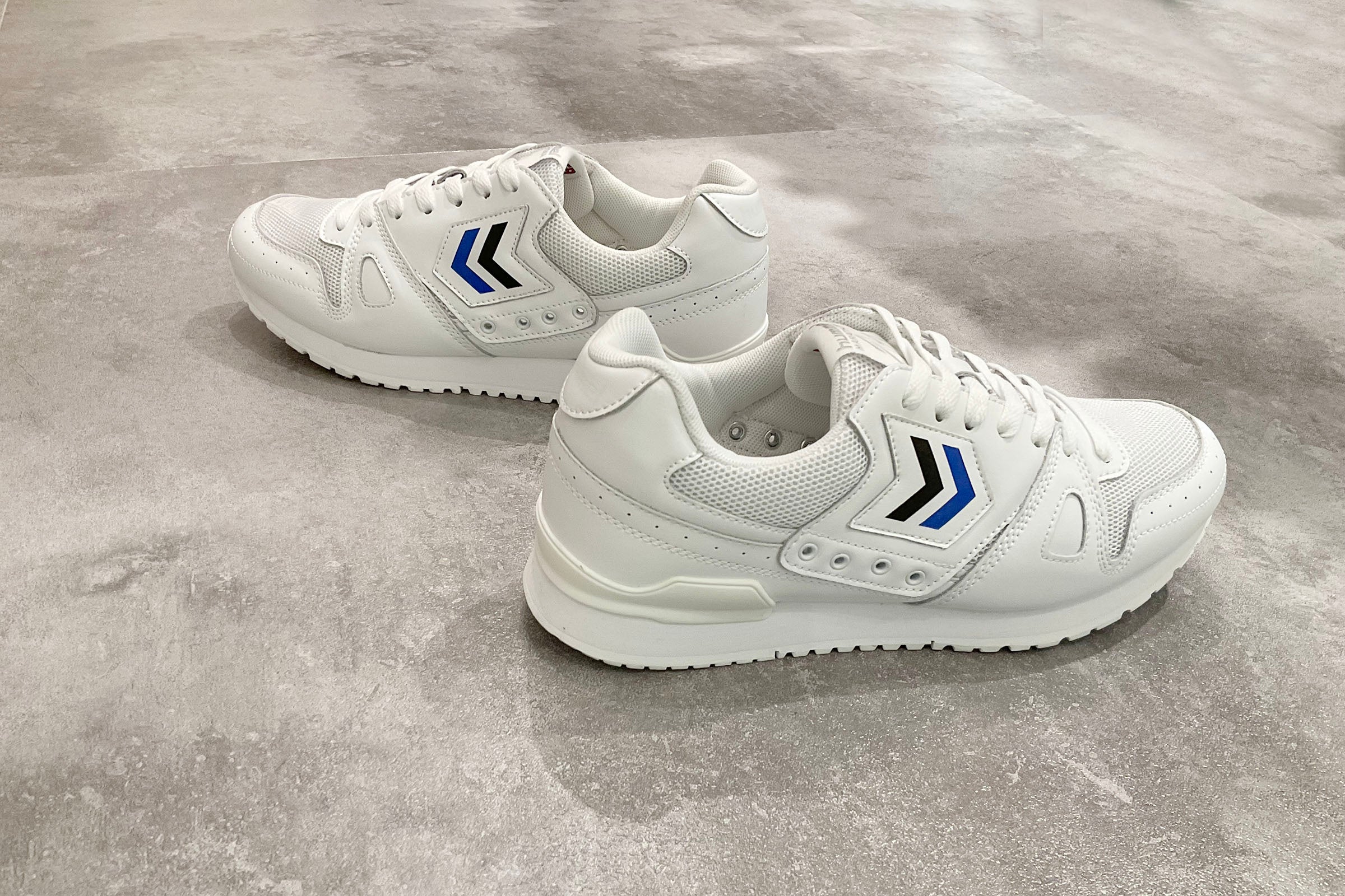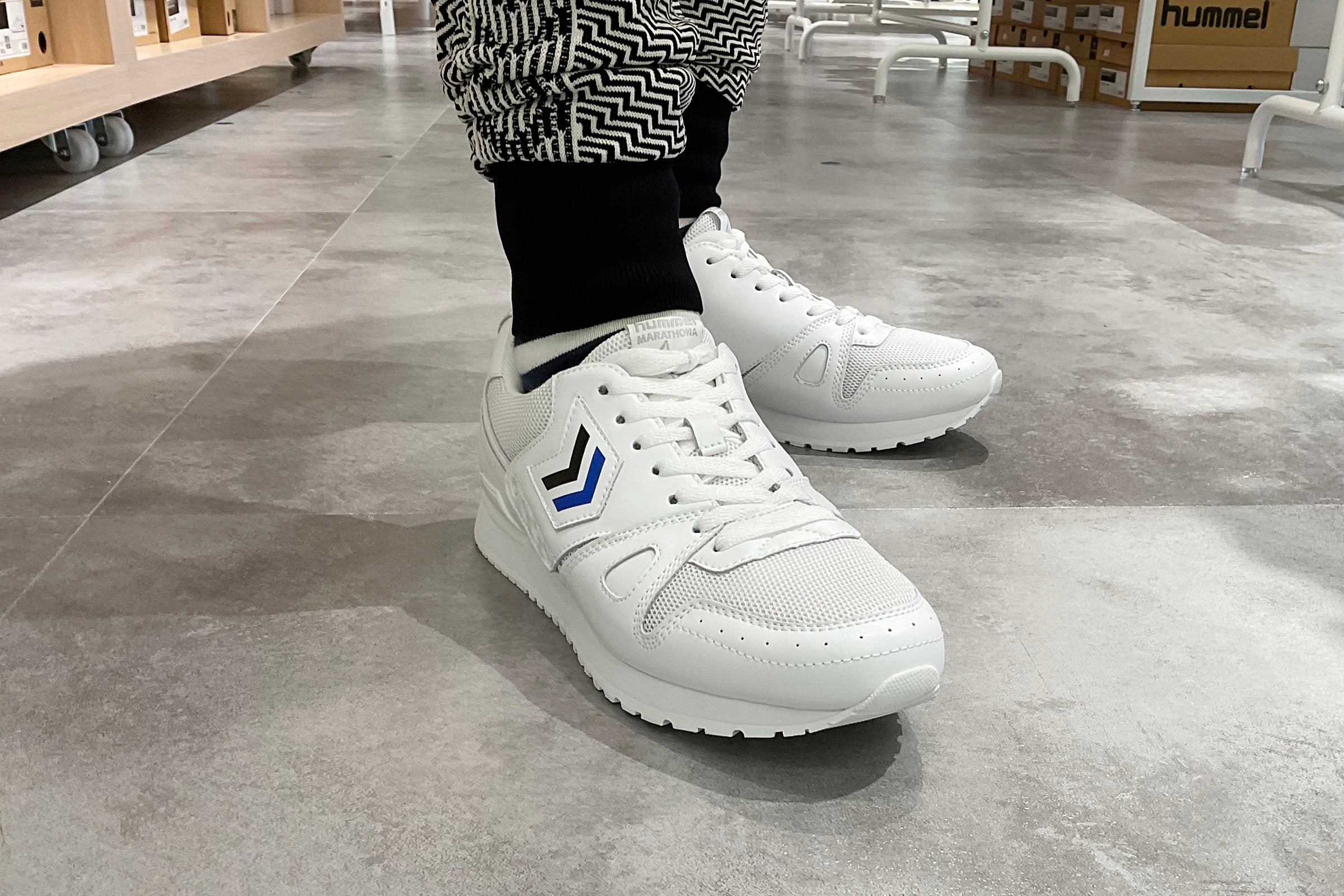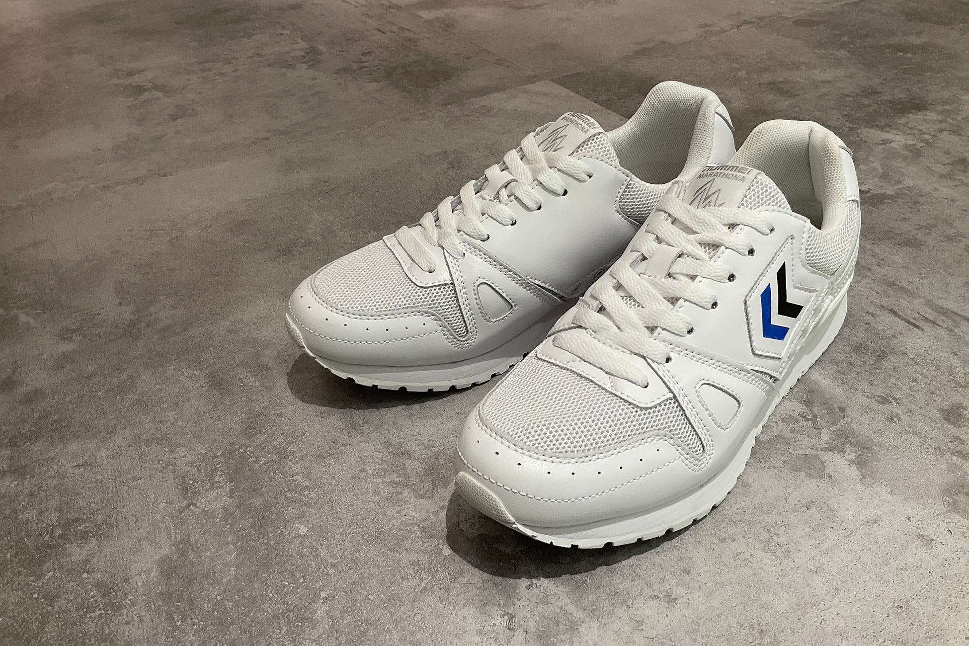 三井アウトレットパーク大阪門真のショップ限定モデルは、ヒュンメルのアーカイブモデルMARATHONA(マラソナ)がベース。マラソナは、長距離用のランニングシューズとして1983年に誕生。ヨーロッパのランニングシーンでは80年代に人気アイテムとなり、レトロランニングスタイルのトレンドとともにスニーカーで復刻。