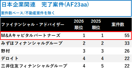 ■「日本M&Aレビュー 2026年第1四半期」においてMACPが3冠を獲得した項目