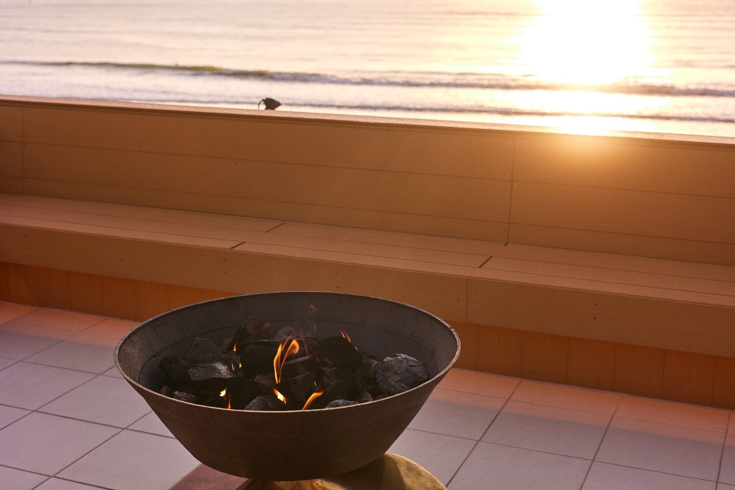 施設中央にある展望デッキスペースでは、目の前に広がる海と夜のライトアップが相まって、幻想的な空間が広がります。焚き火を囲みながら、気の合う仲間と語らう特別な時間をお過ごしください。