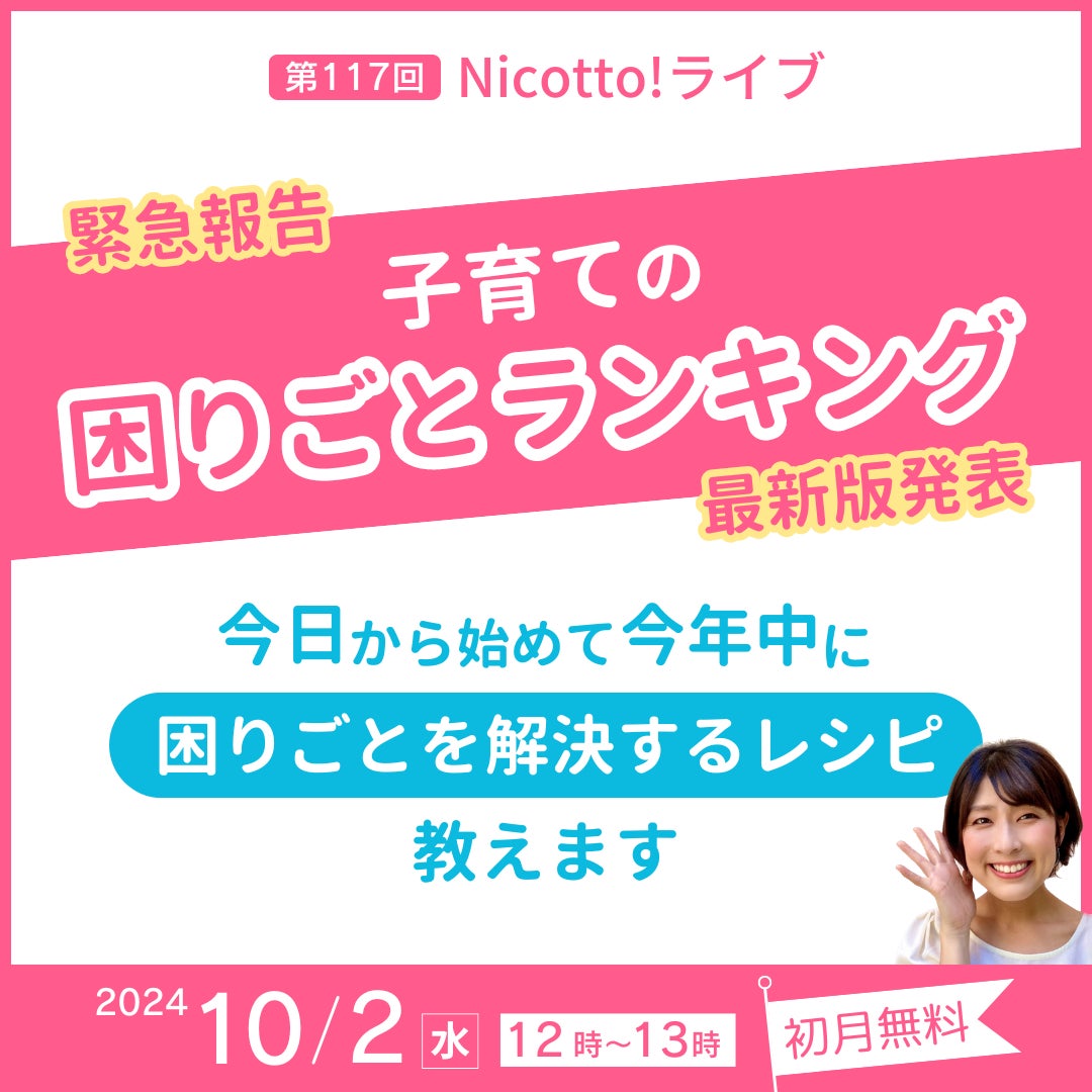 (株)パステルコミュニケーション(本社:東京都豊島区、代表取締役:吉野加容子)が運営する、発達障害・グレーゾーンの子どもを育てるママがいつでも学べて相談できる月額制会員サイトNicotto!塾は、10月2日(水)12−13時~緊急報告 子育ての困りごとランキング最新版発表。今日から始めて今年中に困りごとを解決するレシピ、教えます~オンラインライブを開催いたします。https://desc-lab.com/nicotto202201/?prt0930
