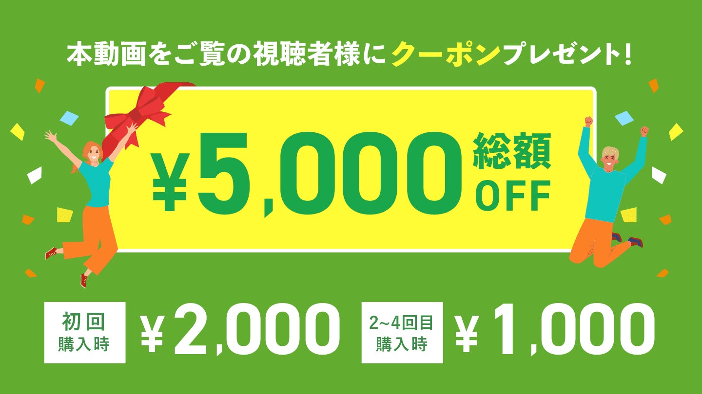 今回の協賛を記念した、お得なキャンペーンも実施中。キャンペーンページからの新規購入で初回購入時2,000円、以降2〜4回目購入毎に1,000円OFFの総額5,000円OFFで購入いただだくことができます。